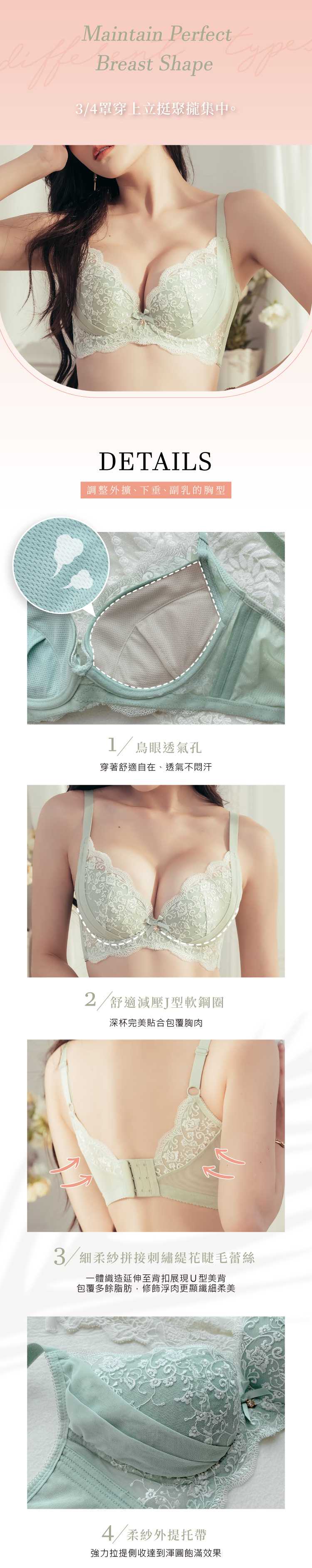 POINT [3] 【細柔紗拼接刺繡緹花睫毛蕾絲】一體織造延伸至背扣展現U型美背,包覆多餘脂肪,修飾浮肉更顯纖細柔美