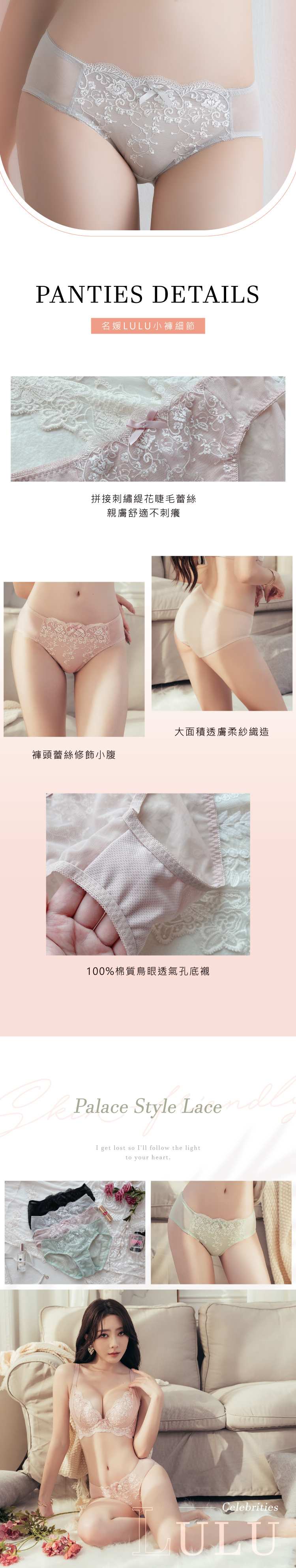 成套內衣【獨家】名媛Lulu-Mini Queen 美胸拉提滿版刺繡緹花蕾絲機能包覆軟鋼圈調整型成套內衣褲(灰綠色65B-95E)