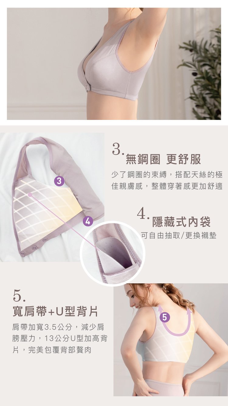 前扣天絲棉透氣無鋼圈內衣 典雅粉