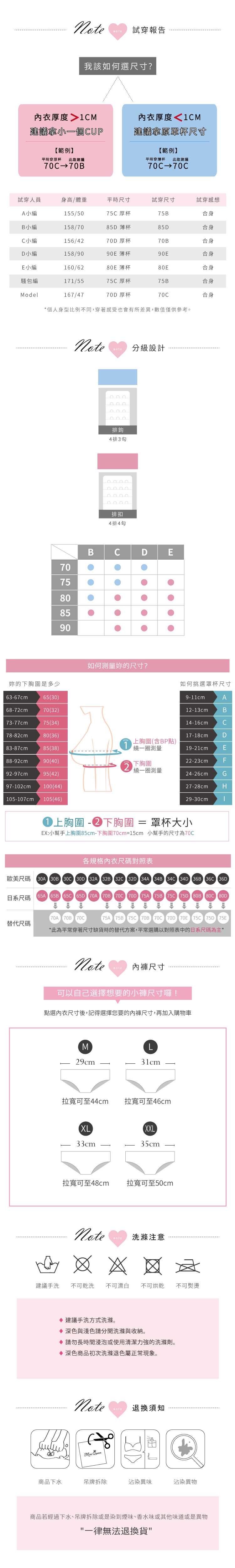 ★ 平時內衣厚度>1CM,此款選擇小一個罩杯尺寸 ★