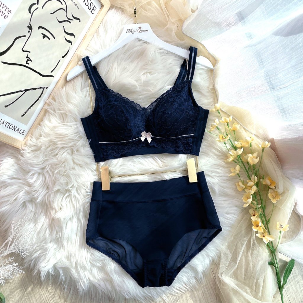 成套內衣_輕漾若拉-Mini Queen包覆機能無鋼圈成套內衣褲(藍色70B-90E)