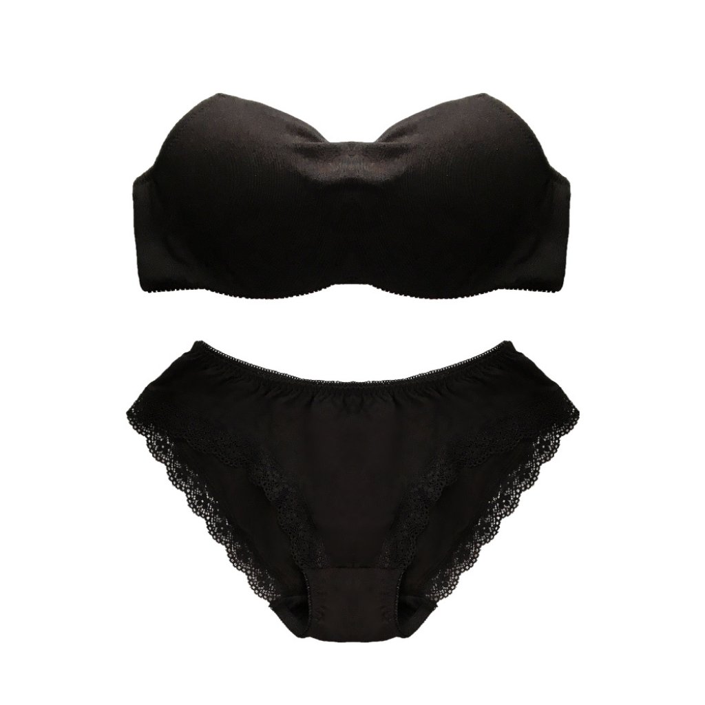 涼感百搭小妞二代-平口爆乳J型鋼圈成套內衣-舒適強化版-黑色(65-90ABCDEFGH)
