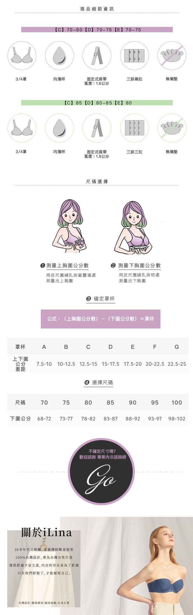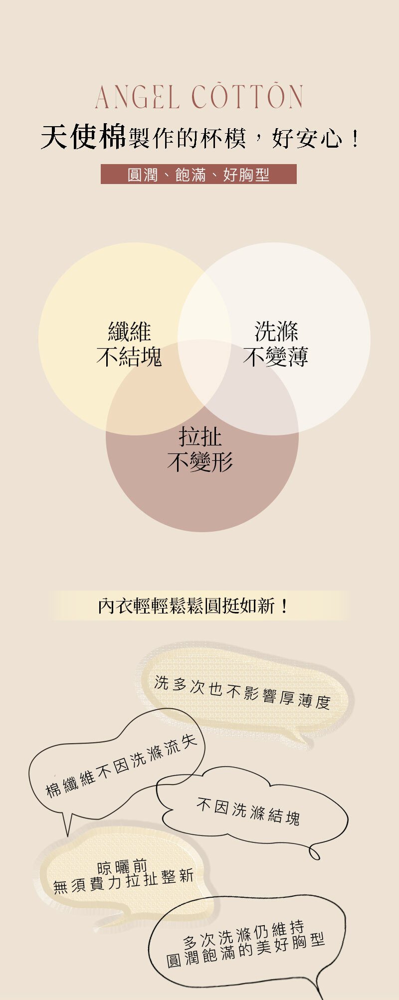 1.材料採用天使棉-纖維緊緻不變形,形塑圓挺胸型
