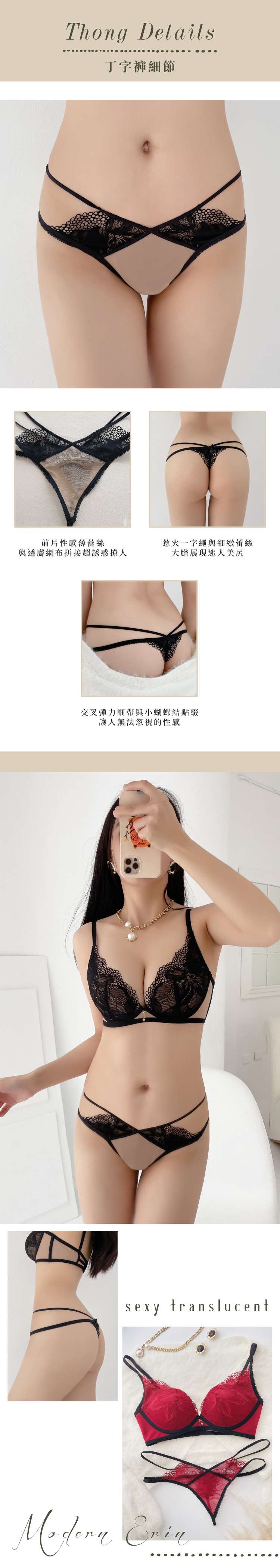 【POINT 6】下緣透膚網布,連接背片微透肌,搭配鏤空細繩很迷人,進而達到加強包覆性及加壓撫平效果