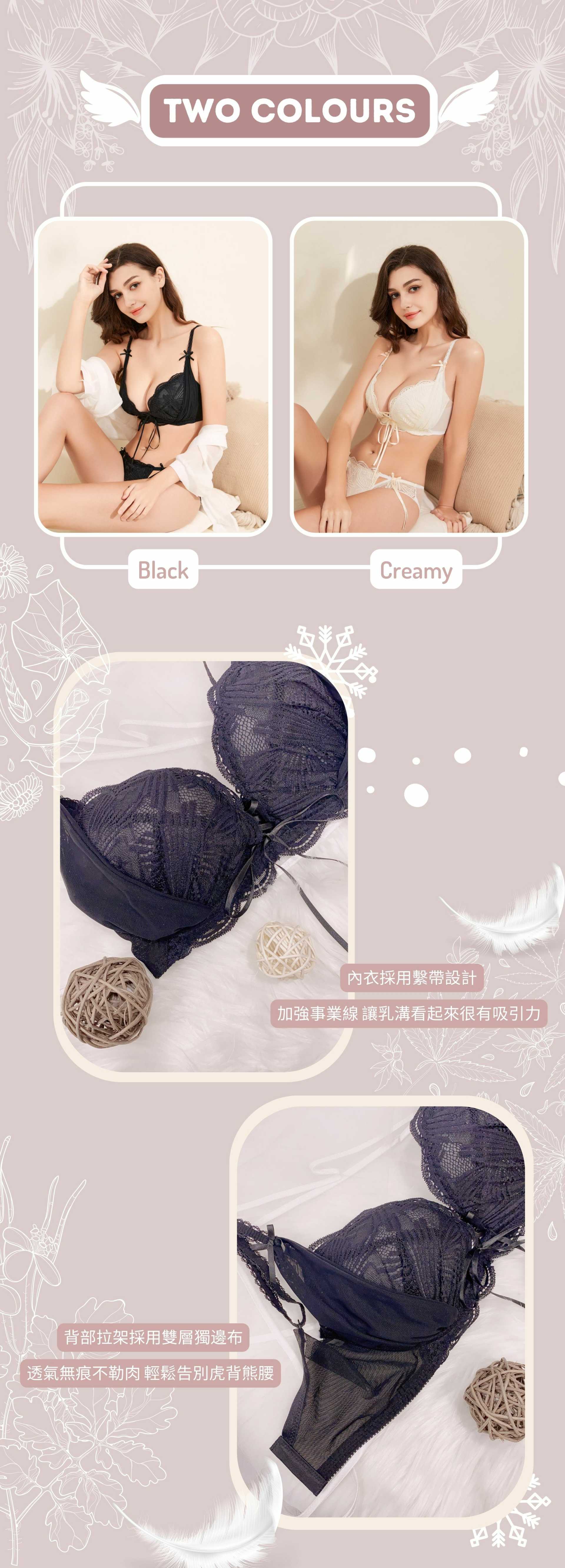 內衣採用繫帶設計 配合淺半罩杯提升性感度! 集中度!