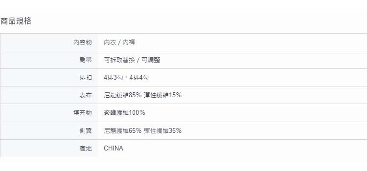 ★ 平時內衣厚度>1CM,此款選擇小一個罩杯尺寸 ★