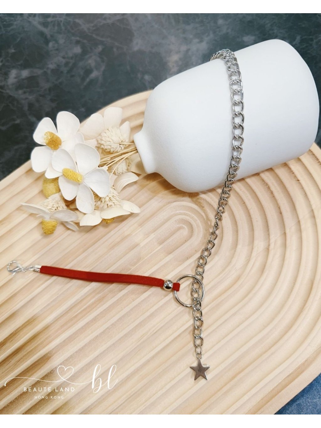 細緻銀鏈連接絨條,