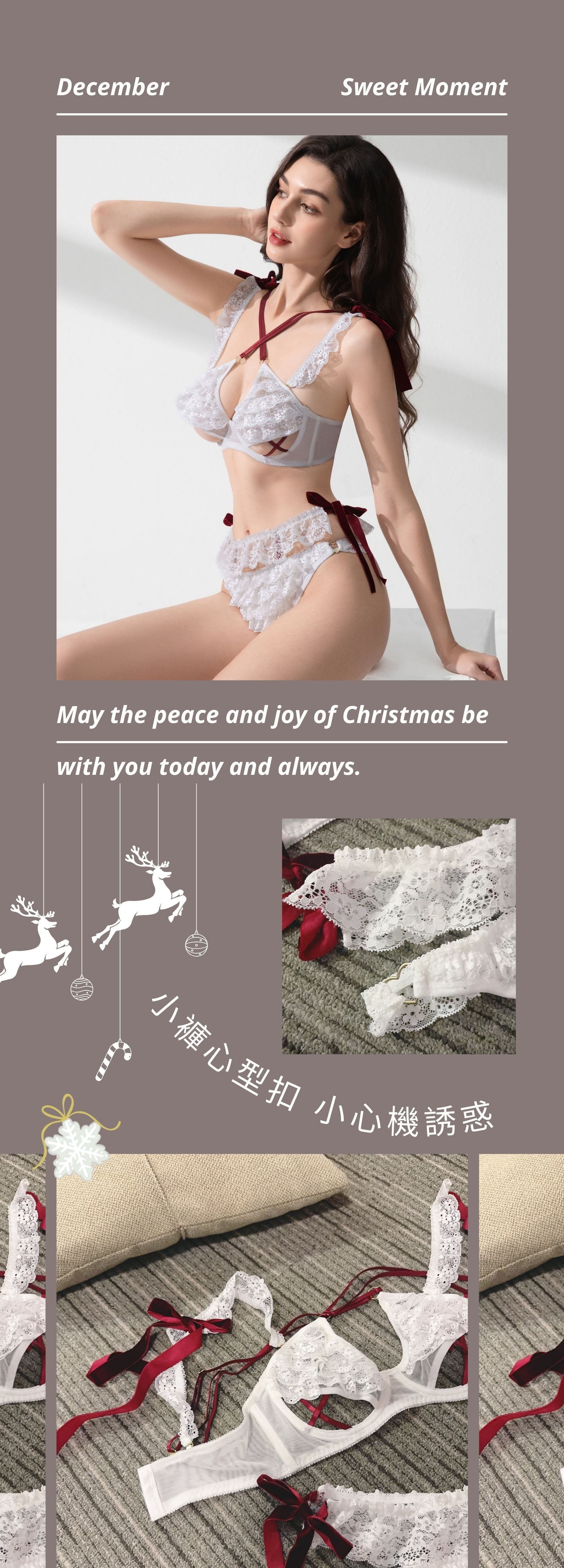 l獨家l Stay With Me 聖誕甜心 薄蕾絲性感套裝 糖霧白