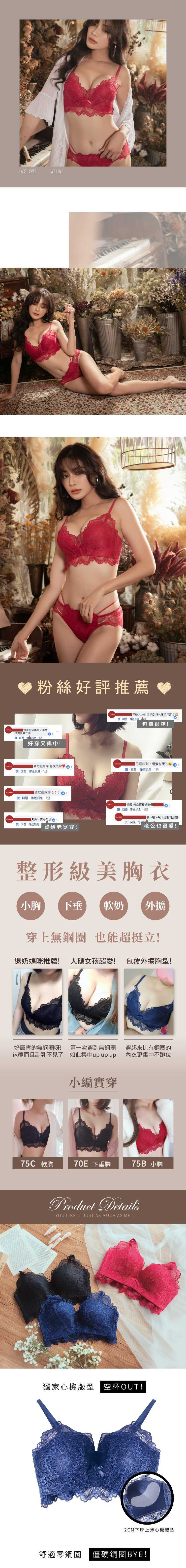無鋼圈【獨家】蕾絲蘿兒-Mini Queen舒壓包覆無鋼圈美型蕾絲成套內衣褲 (紅 65-90 A-H)