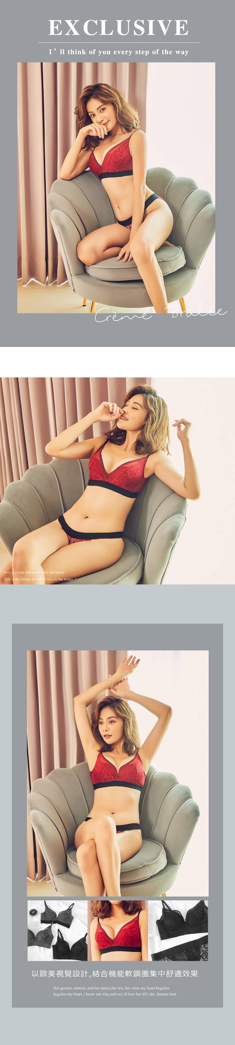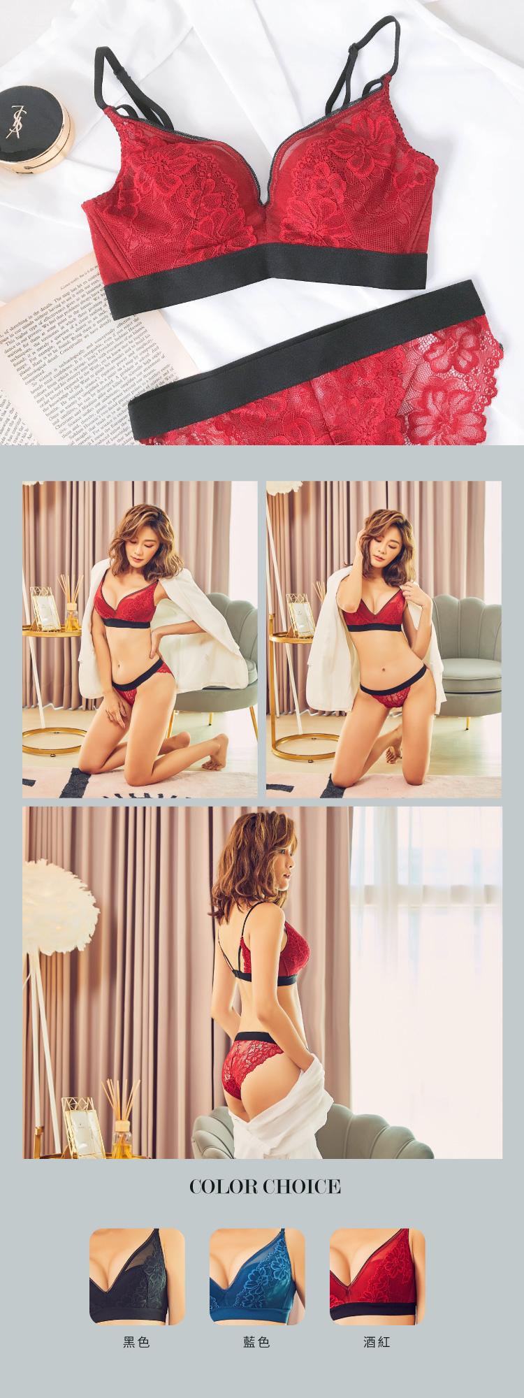 軟鋼圈-法式布蕾-Mini Queen法式蕾絲機能集中軟鋼圈成套內衣褲 (紅 65-95 A-I)