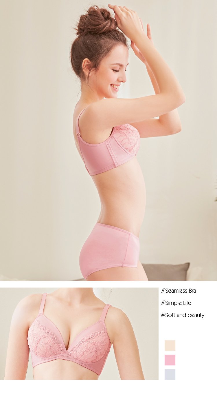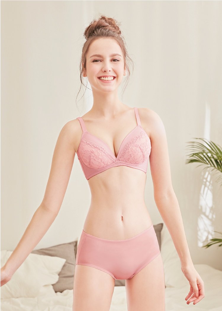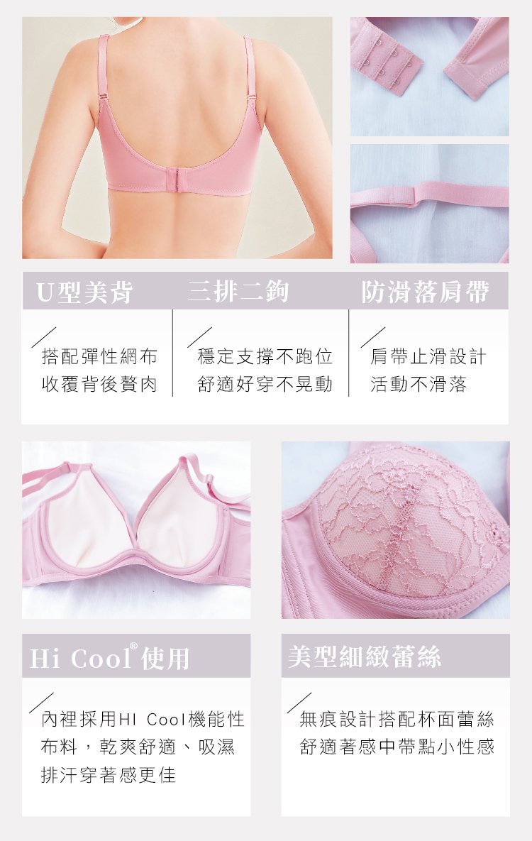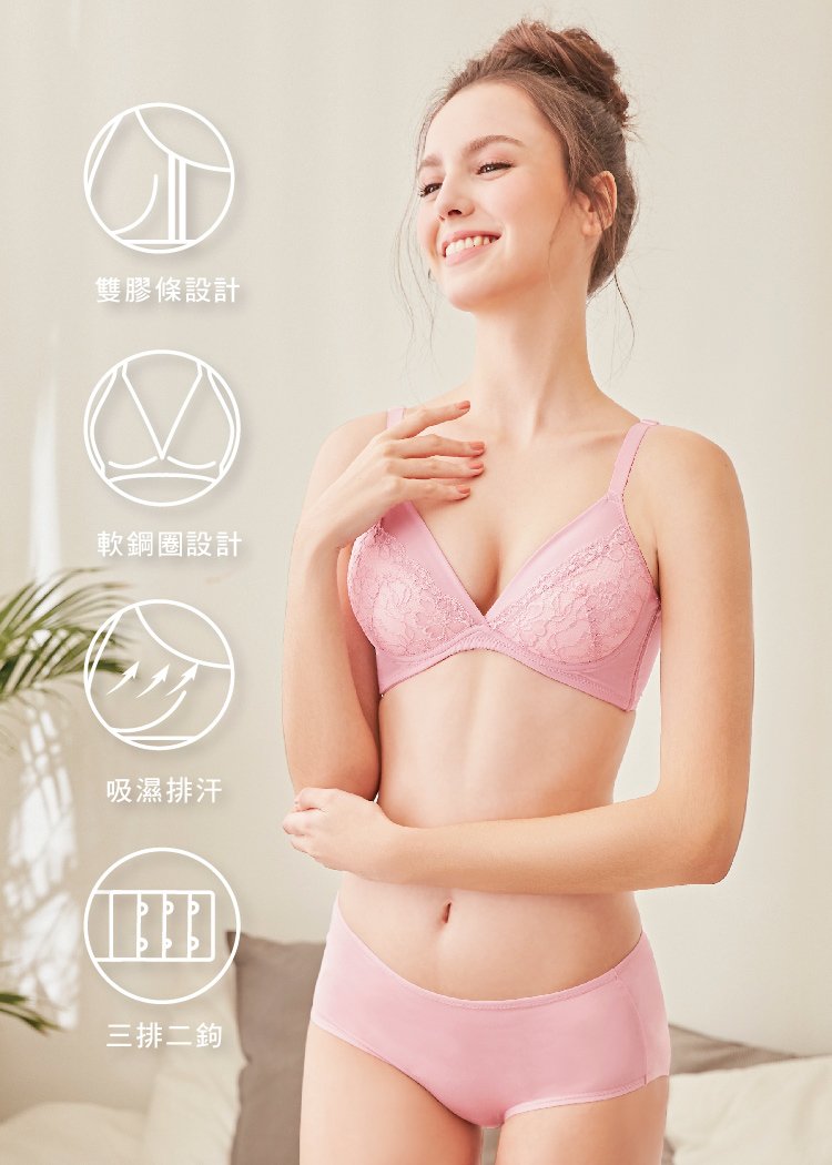 軟鋼圈V曲線AIR透氣蕾絲 S-2XL內衣 高雅粉